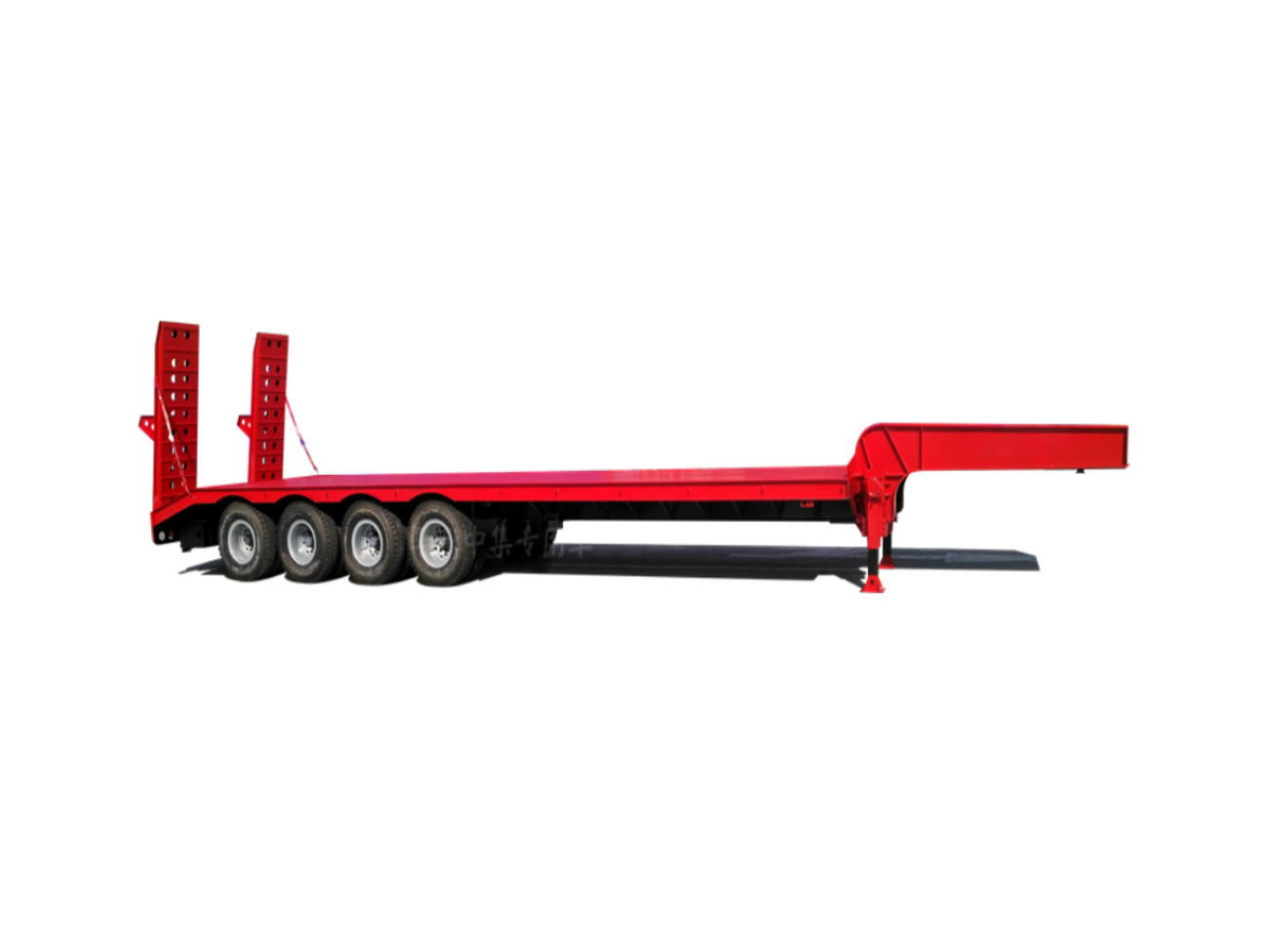 The 4 Axle Lowbed Semi Trailer for sale is a heavy-duty trailer designed for transporting large and heavy equipment, such as construction machinery and industrial equipment. What sets this trailer apart from others on the internet is its lowbed design, which allows for taller loads to be transported without exceeding the maximum height limit, and its four axles, providing more support for the weight of the cargo and improving overall stability during transportation. The trailer also features air suspension and hydraulic ramps for easy loading and unloading of heavy equipment. Contact us now for more information on this unique trailer.
